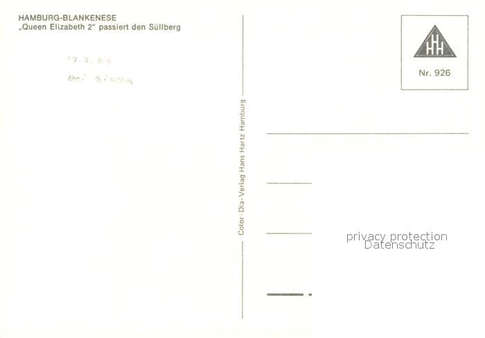 73247843 Blankenese Hamburg Queen Elizabeth 2 passiert den Suellberg Elbe postalisch nicht gelaufen Erhaltung siehe scans [FriedD77] KatCode: 11110002000000