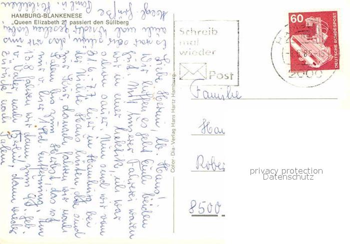 72894118 alte Postkarte Blankenese Hamburg Queen Elizabeth 2 passiert den Suellberg postalisch gelaufen Erhaltung siehe scans [WerneD78] KatCode: 11110002000000