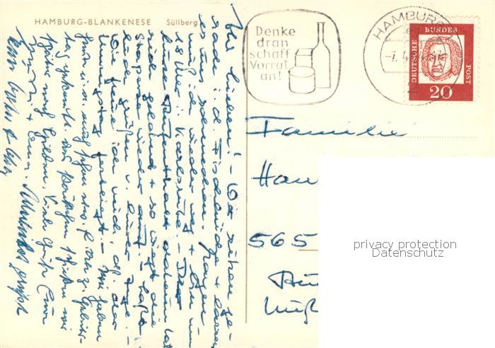 73755072 alte Postkarte Blankenese Hamburg Suellberg postalisch gelaufen Erhaltung siehe scans [FriedD77] KatCode: 11110002000000