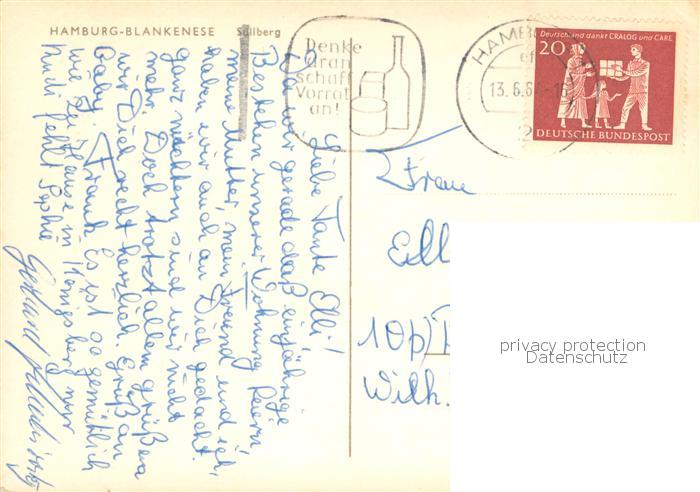 73755054 alte Postkarte Blankenese Hamburg Suellberg postalisch gelaufen Erhaltung siehe scans [FriedD77] KatCode: 11110002000000