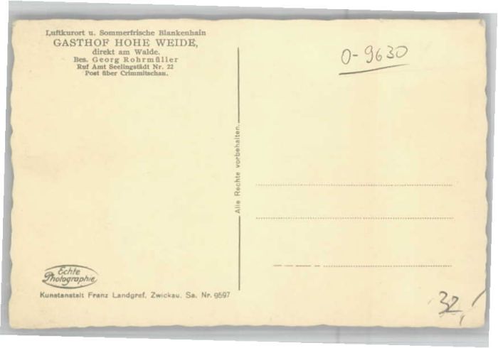40645421 Blankenhain Crimmitschau Gasthof Hohe Weide postalisch nicht gelaufen Alte Ansichtskarte Postkarte Katcode 11110014193020