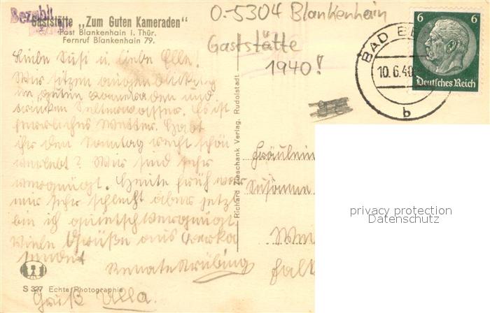 73702026 alte Postkarte Blankenhain Thueringen Gaststaette Zum Guten Kameraden Innen- und Aussenansicht postalisch gelaufen Erhaltung siehe scans [LiesaD40] KatCode: 11110016071008