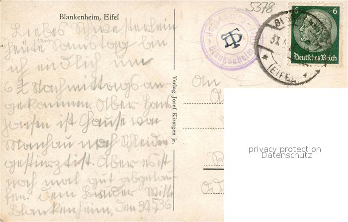 73561309 alte Postkarte Blankenheim Ahr Durchblick zum Schloss postalisch gelaufen Erhaltung siehe scans [FriedD77] KatCode: 11110005366008