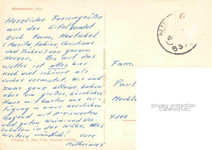 72655685 alte Postkarte Blankenheim Ahr Fliegeraufnahme postalisch gelaufen Erhaltung siehe scans [AndreD76] KatCode: 11110005366008