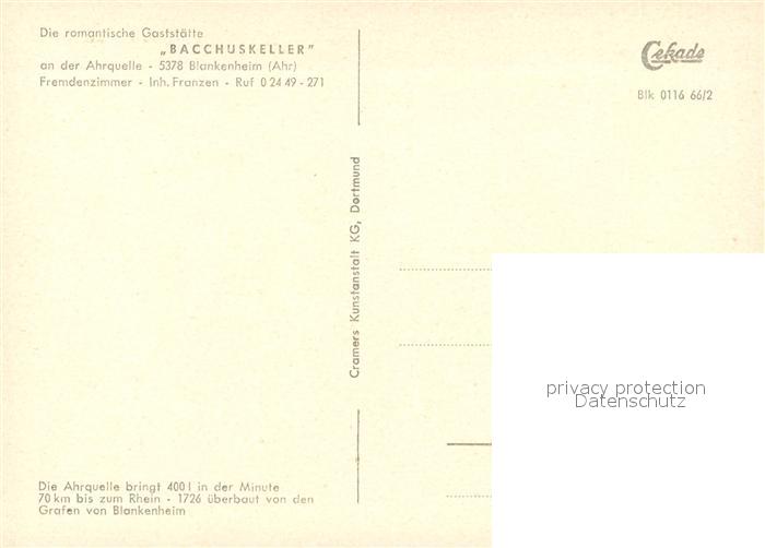 73269143 Blankenheim Ahr Gaststaette Bacchuskeller postalisch nicht gelaufen Erhaltung siehe scans [PaolaD17] KatCode: 11110005366008