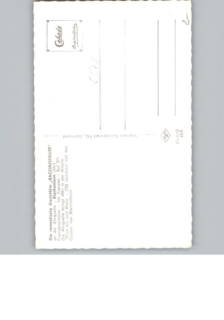 31138281 Blankenheim Ahr Gaststaette Bacchuskeller postalisch nicht gelaufen KatCode: 11110005366008