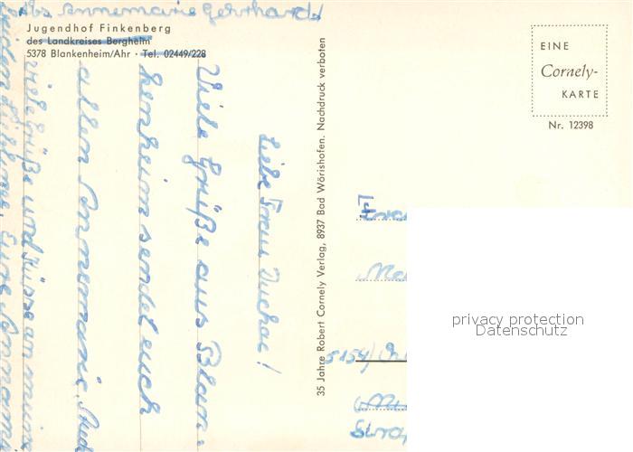 Blankenheim Ahr Jugendhof Finkenberg Cornely Karte Nr 12398