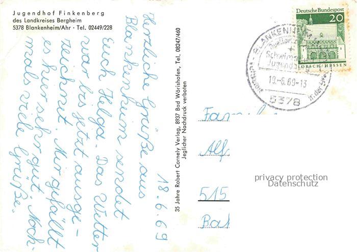 74085176 alte Postkarte Blankenheim Ahr Jugendhof Finkenberg Gastraeume postalisch gelaufen Erhaltung siehe scans [WerneD78] KatCode: 11110005366008