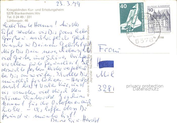 71909614 alte Postkarte Blankenheim Ahr Kriegsblinden Kur Erholungsheim postalisch gelaufen Erhaltung siehe scans KatCode: 11110005366008
