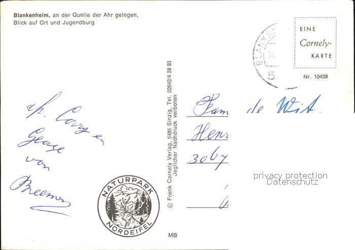 72420956 alte Postkarte Blankenheim Ahr Ortsblick mit Jugendburg postalisch gelaufen Erhaltung siehe scans KatCode: 11110005366008