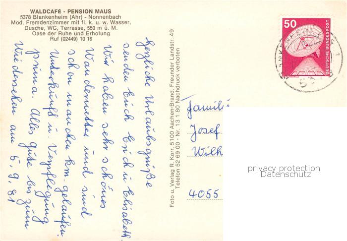 73845462 alte Postkarte Blankenheim Ahr Waldcafe Pension Maus Gartenterrasse Pool postalisch gelaufen Erhaltung siehe scans [WerneD78] KatCode: 11110005366008