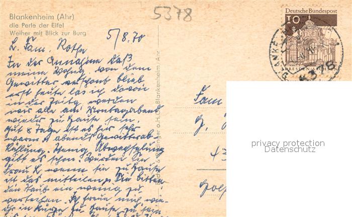 73695889 alte Postkarte Blankenheim Ahr Weiher mit Blick zur Burg postalisch gelaufen Erhaltung siehe scans [WerneD78] KatCode: 11110005366008