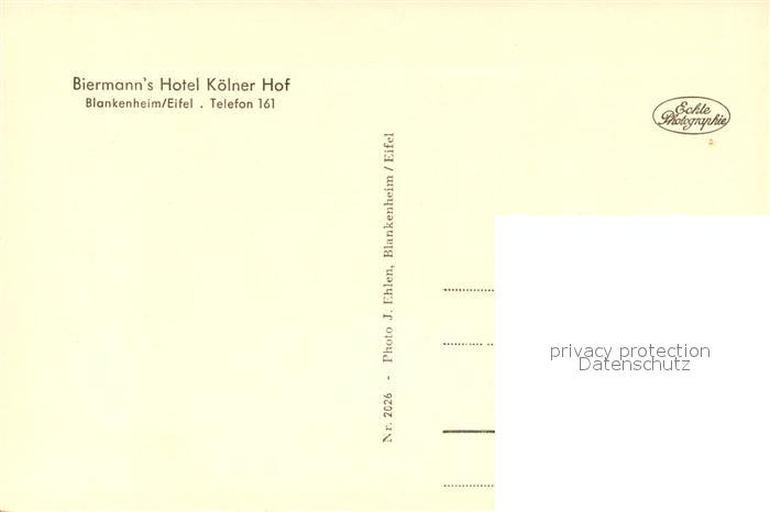 73557150 Blankenheim Eifel Biermann’s Hotel K?lner Hof postalisch nicht gelaufen Erhaltung siehe scans [PaolaD17] KatCode: 11110005366008