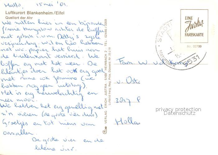 73306575 alte Postkarte Blankenheim Eifel Fliegeraufnahme postalisch gelaufen Erhaltung siehe scans [WerneD78] KatCode: 11110005366008