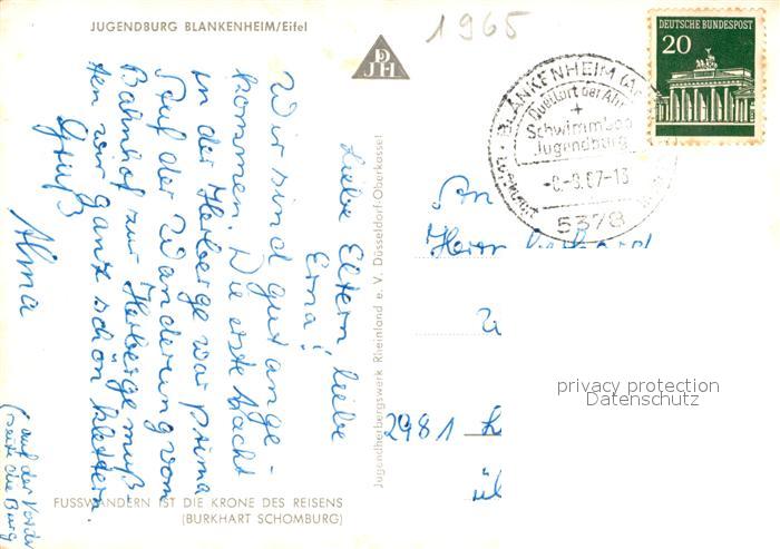73140180 alte Postkarte Blankenheim Eifel Jugendburg postalisch gelaufen Erhaltung siehe scans [FriedD77] KatCode: 11110005366008