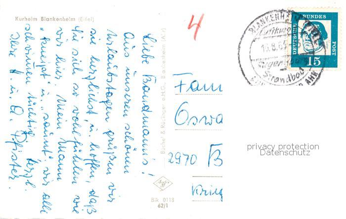 73796950 alte Postkarte Blankenheim Eifel Kurheim postalisch gelaufen Erhaltung siehe scans [FriedD77] KatCode: 11110005366008