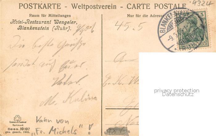 73692876 alte Postkarte Blankenstein Ruhr Blick ueber die Ruhr zur Burg Ruderboot postalisch gelaufen Erhaltung siehe scans [FriedD77] KatCode: 11110005954016