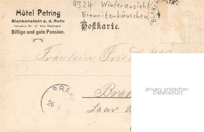 73692873 alte Postkarte Blankenstein Ruhr Eremitenhaeuschen im Gethmann’schen Garten Litho Kuenstlerkarte postalisch gelaufen Erhaltung siehe scans [FriedD77] KatCode: 11110005954016
