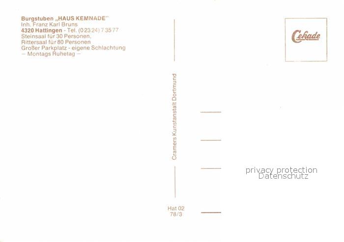 72673126 Blankenstein Ruhr Haus Kemmade postalisch nicht gelaufen Erhaltung siehe scans [AndreD76] KatCode: 11110005954016