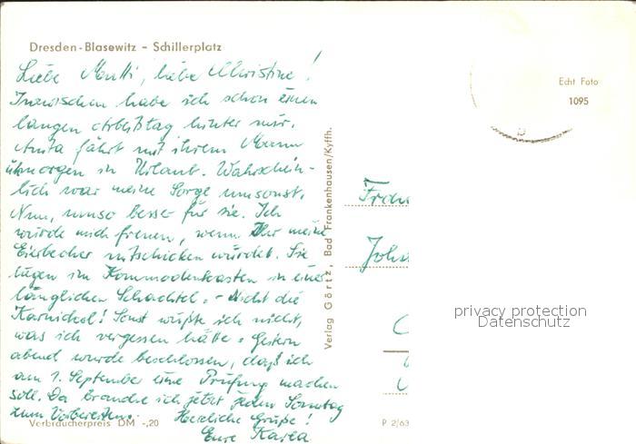 71998588 alte Postkarte Blasewitz Dresden Schillerplatz postalisch gelaufen Erhaltung siehe scans KatCode: 11110014262000