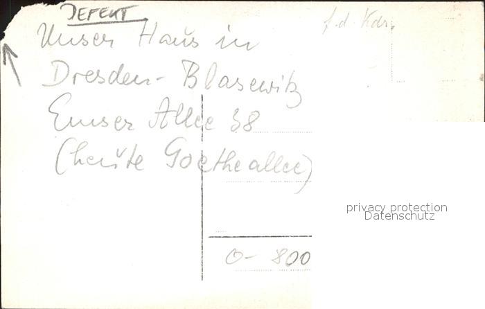 41988716 Blasewitz Dresden Wohnhaus postalisch nicht gelaufen Erhaltung siehe scans KatCode: 11110014262000