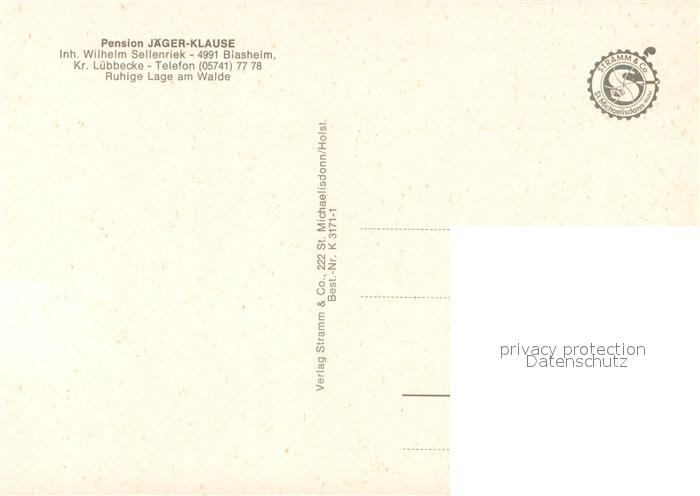 73726501 Blasheim Pension Jaeger-Klause Wiehengebierge postalisch nicht gelaufen Erhaltung siehe scans [LiesaD40] KatCode: 11110005770020