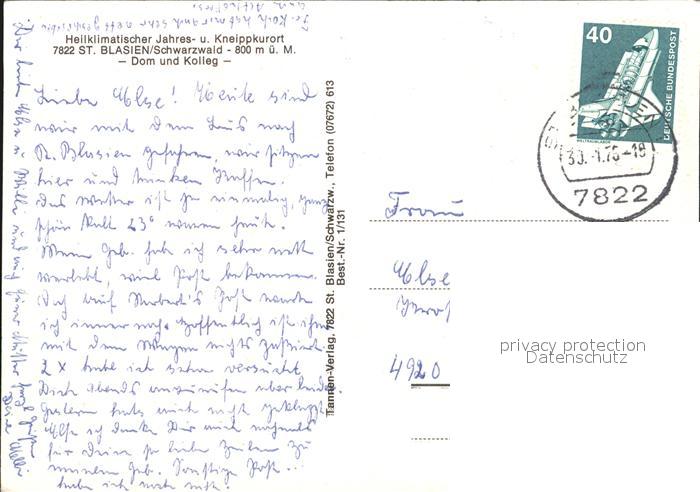 72523707 alte Postkarte Blasien St Dom Kolleg Winter postalisch gelaufen Erhaltung siehe scans KatCode: 11110008337097