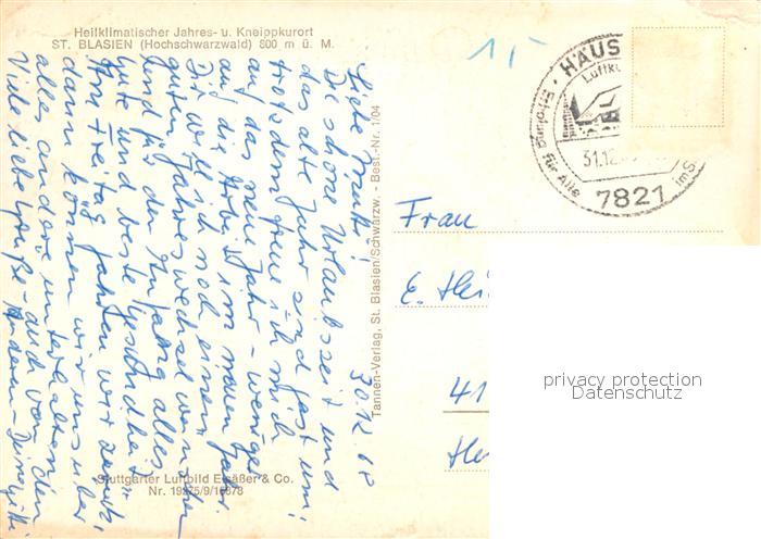 73013261 alte Postkarte Blasien St Fliegeraufnahme Panorama postalisch gelaufen Erhaltung siehe scans [KathaD81] KatCode: 11110008337097