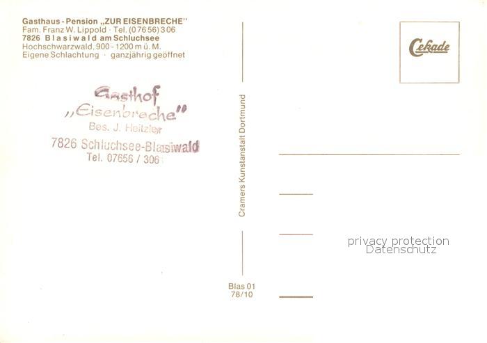 73651213 Blasiwald Gasthaus Pension Zur Eisenbreche im Schwarzwald postalisch nicht gelaufen Erhaltung siehe scans [FriedD77] KatCode: 11110008315102