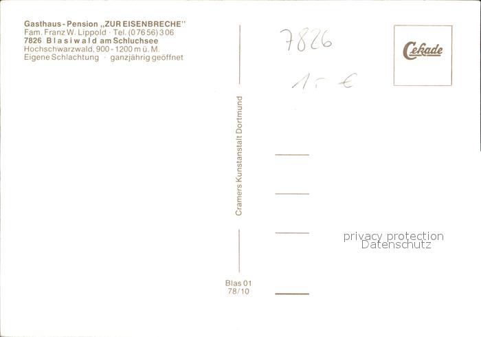 72417445 Blasiwald Restaurant Pension Zur Eisenbreche postalisch nicht gelaufen Erhaltung siehe scans KatCode: 11110008315102