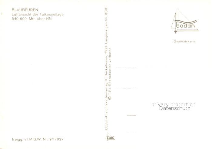 73190227 Blaubeuren Fliegeraufnahme Talkessellage Seissen Rucken postalisch nicht gelaufen Erhaltung siehe scans [NatalD47] KatCode: 11110008425020