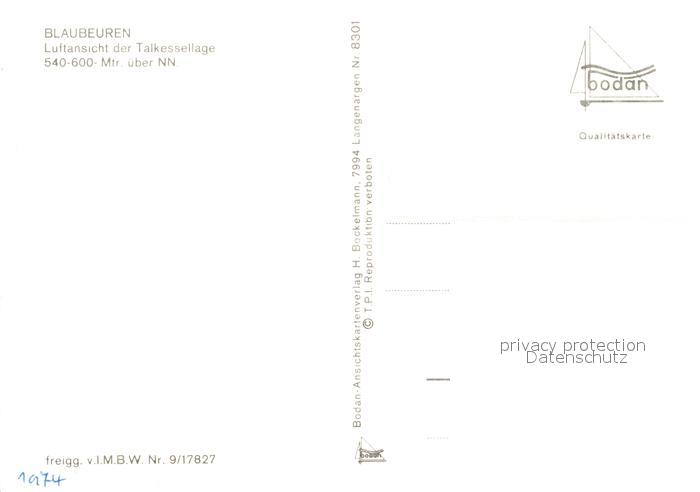 73541837 Blaubeuren Fliegeraufnahme Talkessellage postalisch nicht gelaufen Erhaltung siehe scans [LiesaD40] KatCode: 11110008425020