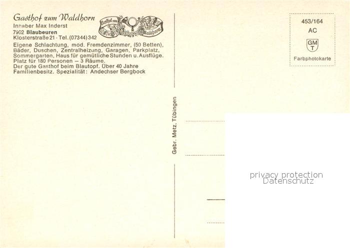 73616435 Blaubeuren Gasthof Waldhorn postalisch nicht gelaufen Erhaltung siehe scans [WerneD78] KatCode: 11110008425020