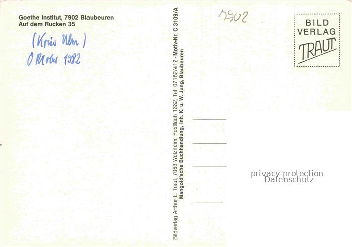 74049913 Blaubeuren Goethe Institut Lehrsaal postalisch nicht gelaufen Erhaltung siehe scans [FriedD77] KatCode: 11110008425020