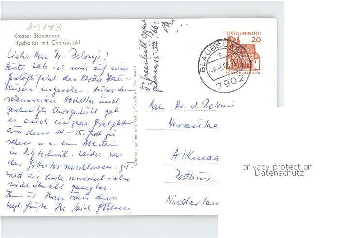 72109457 alte Postkarte Blaubeuren Kloster Hochaltar Chorgestuehl postalisch gelaufen Erhaltung siehe scans KatCode: 11110008425020