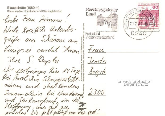 73040865 alte Postkarte Blaueishuette Berchtesgaden Berghaus Blaueisspitze Hochkalter Gletscher postalisch gelaufen Erhaltung siehe scans [FriedD77] KatCode: 11110009172129