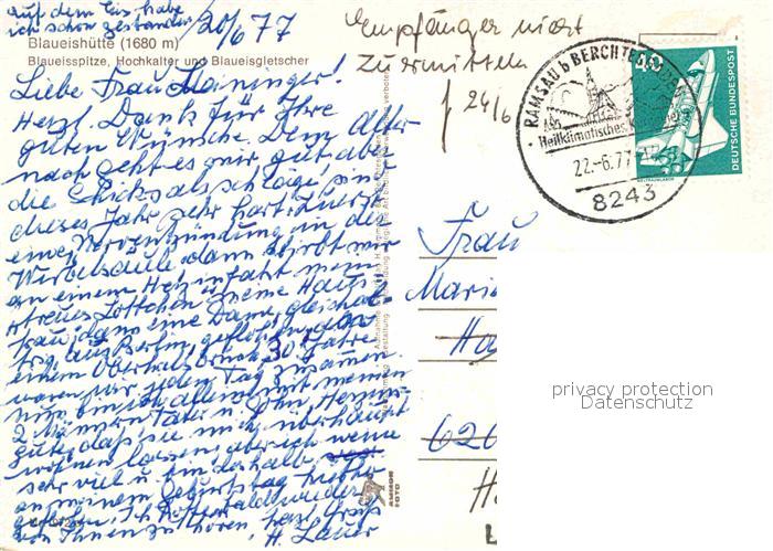 72843917 alte Postkarte Blaueishuette Berchtesgaden Blauelsspitze Hochkalter Blaueisgletscher postalisch gelaufen Erhaltung siehe scans [NatalD47] KatCode: 11110009172129