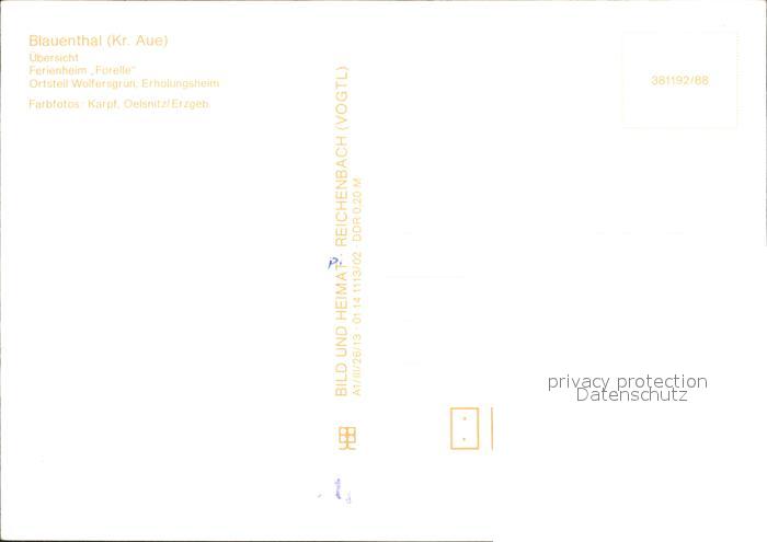 72333851 Blauenthal Erzgebirge Ferienheim Forelle Wolfersgruen postalisch nicht gelaufen Erhaltung siehe scans KatCode: 11110014191120