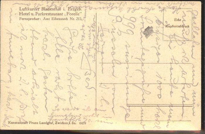 41238664 Blauenthal Erzgebirge Hotel Parkrestaurant Forelle KatCode 11110014191120