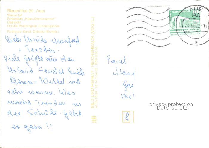 72372644 alte Postkarte Blauenthal Erzgebirge Wasserfall Ferienheim Haus Zimmersacher Wolfersgruen Erholungsheim postalisch gelaufen Erhaltung siehe scans KatCode: 11110014191120