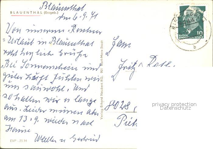 72030291 alte Postkarte Blauenthal Erzgebirge postalisch gelaufen KatCode: 11110014191120