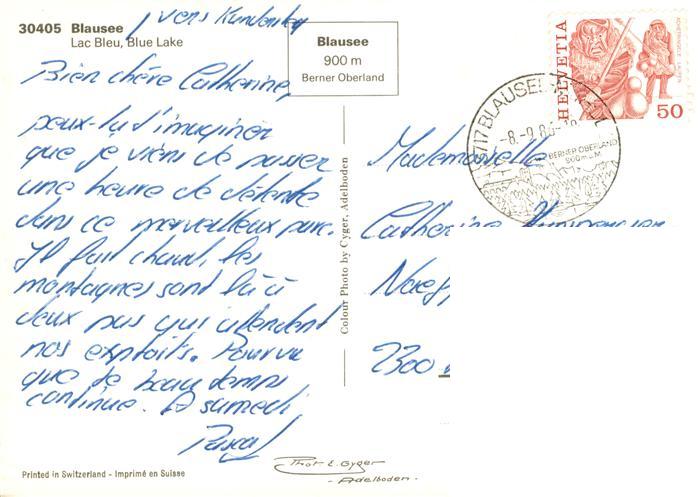 13946934 alte Postkarte Blausee-Mitholz BE Bootsfahrt Idylle am See Gasthaus Restaurant postalisch gelaufen Erhaltung siehe scans [FriedD77] KatCode: 11470060170212