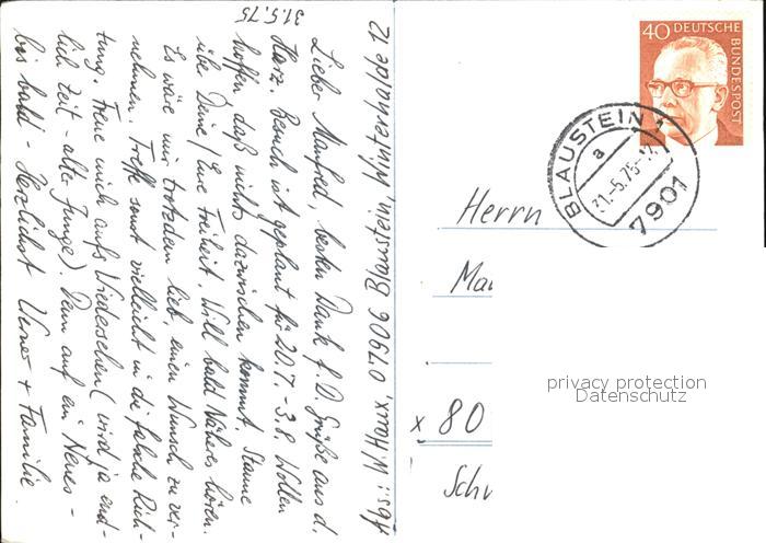 72404623 alte Postkarte Blaustein Stadtblick bei Nacht postalisch gelaufen Erhaltung siehe scans KatCode: 11110008425141