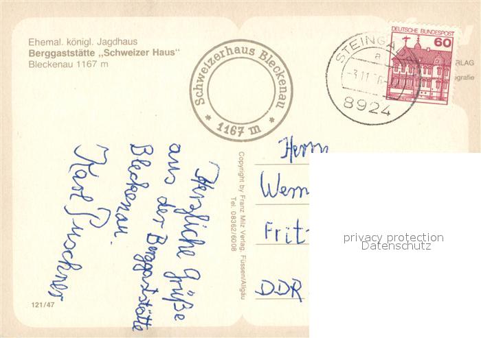 73653368 alte Postkarte Bleckenau Berggaststaette Schweizer Haus ehem postalisch gelaufen Erhaltung siehe scans [WerneD78] KatCode: 11110009777169