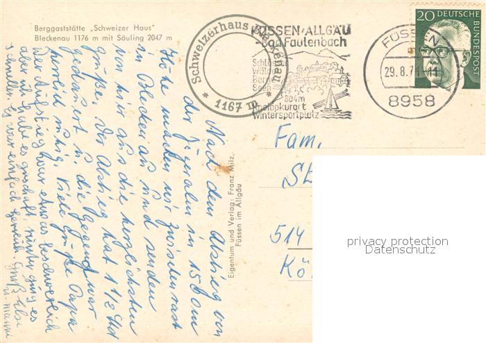 73650769 alte Postkarte Bleckenau Berggaststaette Schweizer Haus mit Saeuling postalisch gelaufen Erhaltung siehe scans [WerneD78] KatCode: 11110009777169