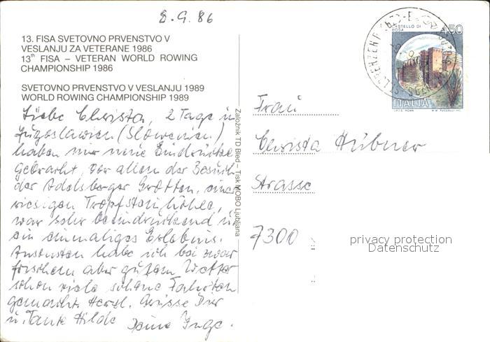 old postcard Bled Fliegeraufnahme postalisch gelaufen Erhaltung siehe scans