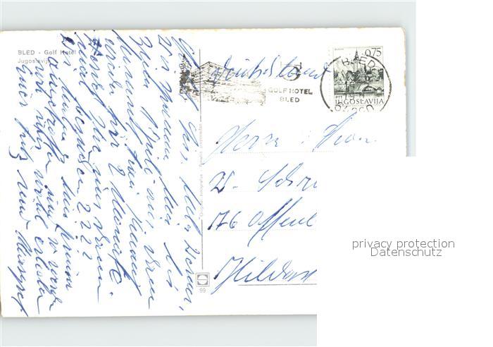 old postcard Bled Golf Hotel bei Nacht Swimmingpool postalisch gelaufen Erhaltung siehe scans