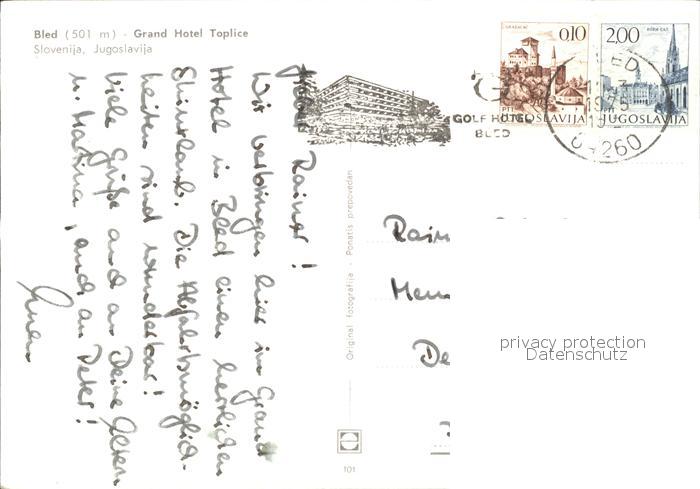 old postcard Bled Grand Hotel Toplice postalisch gelaufen Erhaltung siehe scans