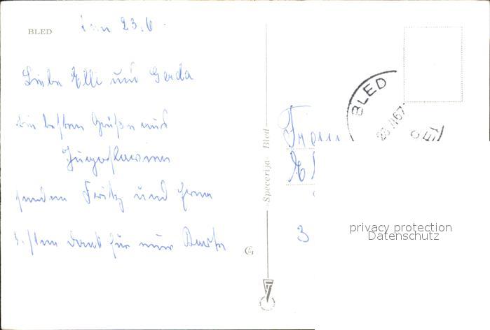 old postcard Bled Uferpartie am See Kirche Felsen postalisch gelaufen Erhaltung siehe scans [FriedD77]