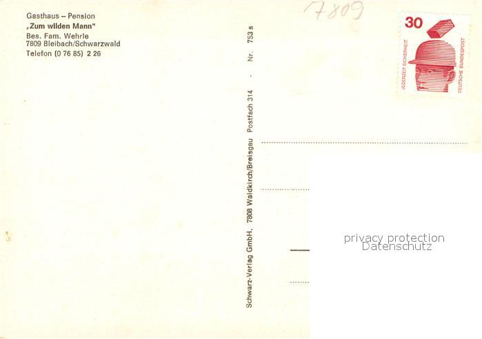 73642180 Bleibach Gasthaus Pension Zum wilden Mann Gaststube postalisch nicht gelaufen Erhaltung siehe scans [WerneD78] KatCode: 11110008316014